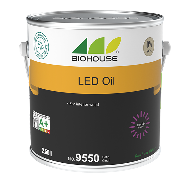 碧欧®LED油是一种UV-LED紫外线固化的100%固含量的木器涂料。涂装后的木材外观和用自然固化的木蜡油相同。LED油渗入木材内,形成开放式的涂层,强调木材的自然纹理和手感。碧欧®LED油适用于需要立即固化的现场涂装以及地板厂和家具厂的辊涂涂装。采用手持式LED固化灯或者固定在油漆线上的LED固化设备,可以在几秒钟固化涂料。