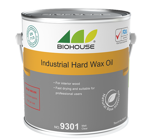 Biohouse®Industrial Hard Wax Oil is a natural-drying wood finish based on plant oils and carnauba wax. It is fast drying and suitable for industrial application. It is suitable for all type of interior wooden products, especially for wooden flooring and furniture. The oil penetrates into wood and forms micro-porous, water repellent surface. The surface will not crack, peel, flake or blister and is excellent in resistance to wine, coffee, tea, juice, cola and etc. Biohouse Industrial Hard Wax Oil does not contain any harmful substances. The dried surface is food contact safety according to FDA 21CFR175.300 and suitable for children’s toys according to EN71-3.