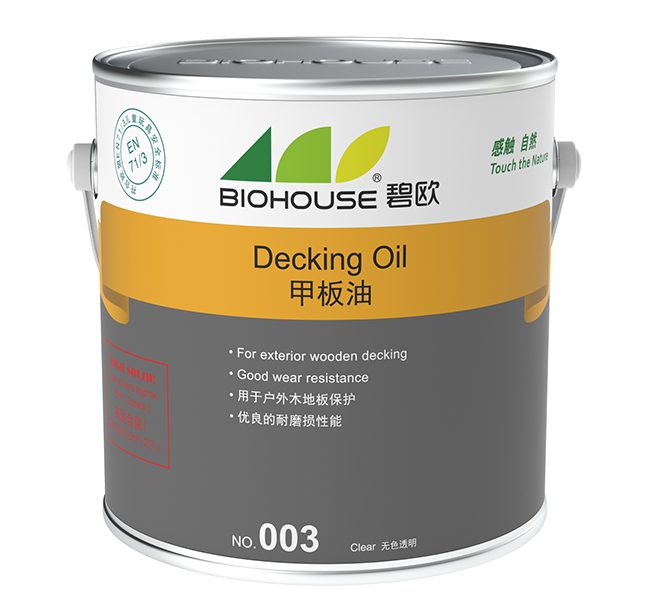 Biohouse Decking Oil is a wood finishing oil for protecting outdoor wooden decking, terrace or patio. It is also ideal for treating other outdoor timber such as exterior wall panel, garden furniture, summerhouse, and fencing, etc. BiohouseDecking Oil is excellent in weather resistance. The oil penetrates deeply into wood and provides excellent water-resistant and dirt repellent surface. It will not crack or peel over long period. For future renovation, no sanding is necessary. Just apply a new coat. Biohouse Decking Oil can also be used as topcoat over outdoor satins, for example Biohouse tinted Clear Oil, as a protective layer above.